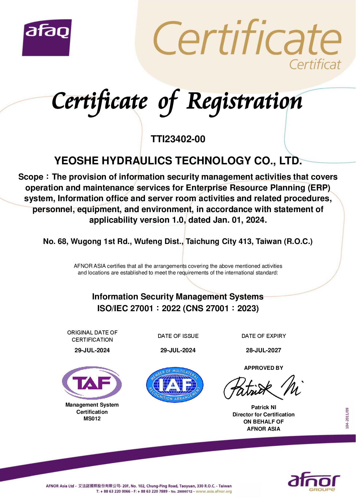 ✅ ISO/IEC 27001:資訊安全管理系統認證